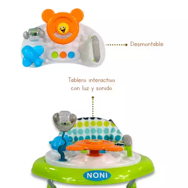 Su tablero de juego desmontable con luces y sonidos estimula los sentidos y convierte cada paso en una aventura. Además, su altura ajustable en 3 niveles se adapta al crecimiento de tu bebé para brindarle comodidad y seguridad en todo momento.